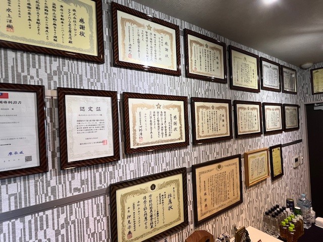 経済産業大臣 表彰(2016 はばたく中小企業 技術技能部門) 愛知県警春日井警察署 感謝状(4回) 愛知県一宮警察署 感謝状(2回) 愛知県緑警察署 感謝状 愛知県中川警察署 感謝状(2回) 愛知県稲沢警察署 感謝状 大阪府警東警察署 感謝状 |
